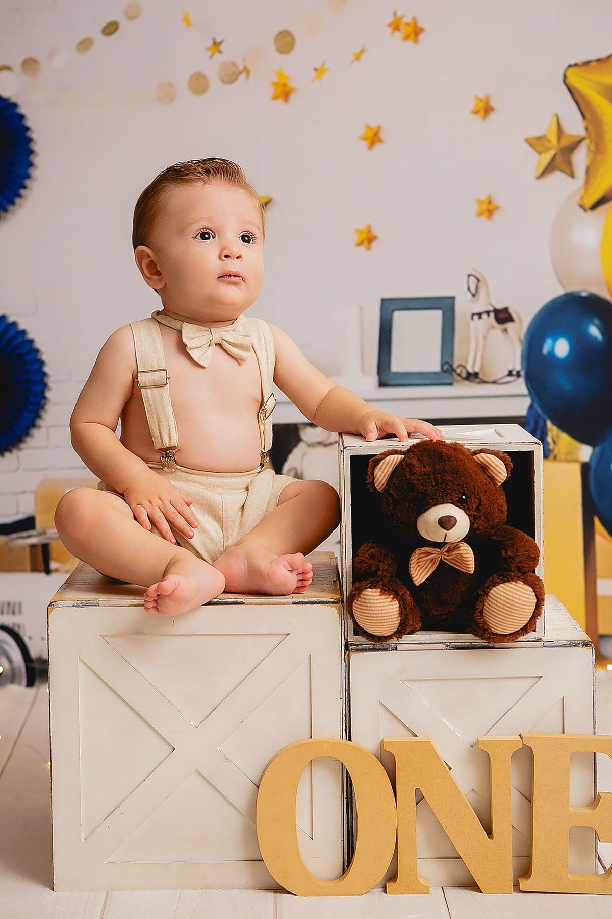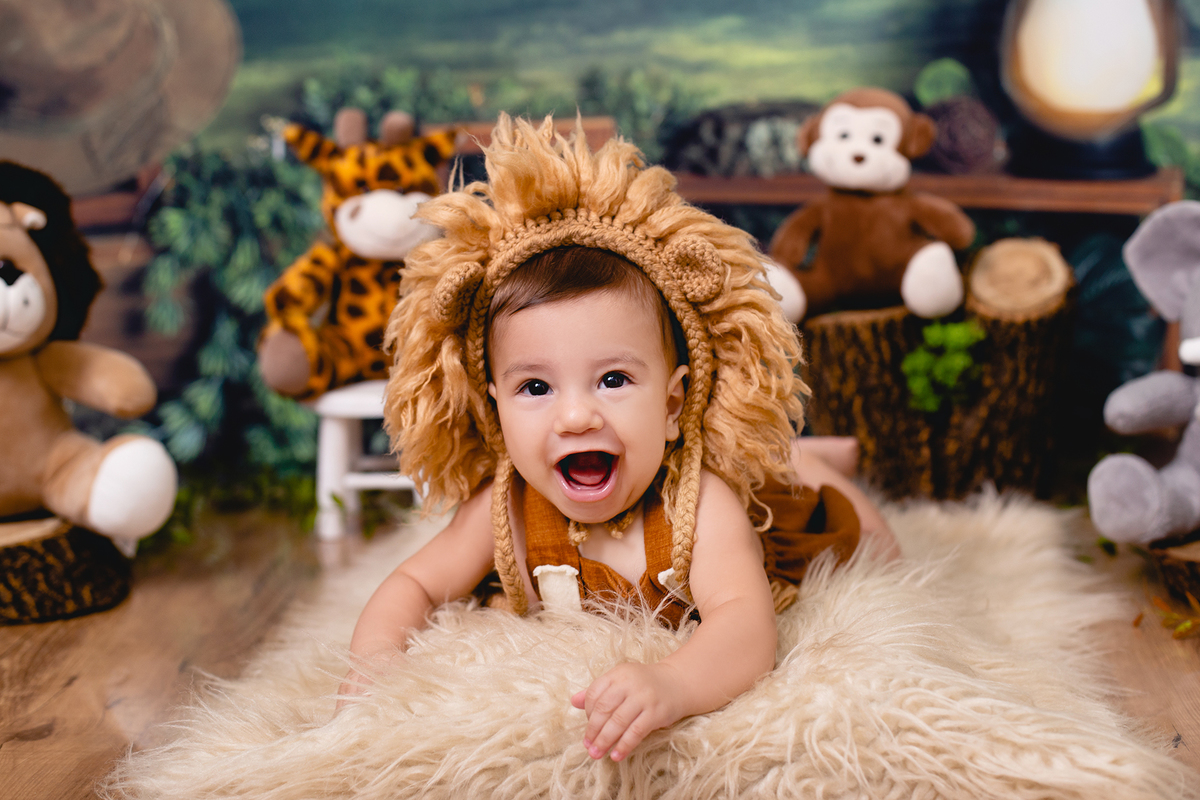 Você pode escolher cenários temáticos, usar roupinhas especiais ou seguir uma linha mais simples e atemporal. O importante é que, ao final do primeiro aninho, você terá um acervo incrível de lembranças que mostram toda a evolução do seu bebê mês a mês.